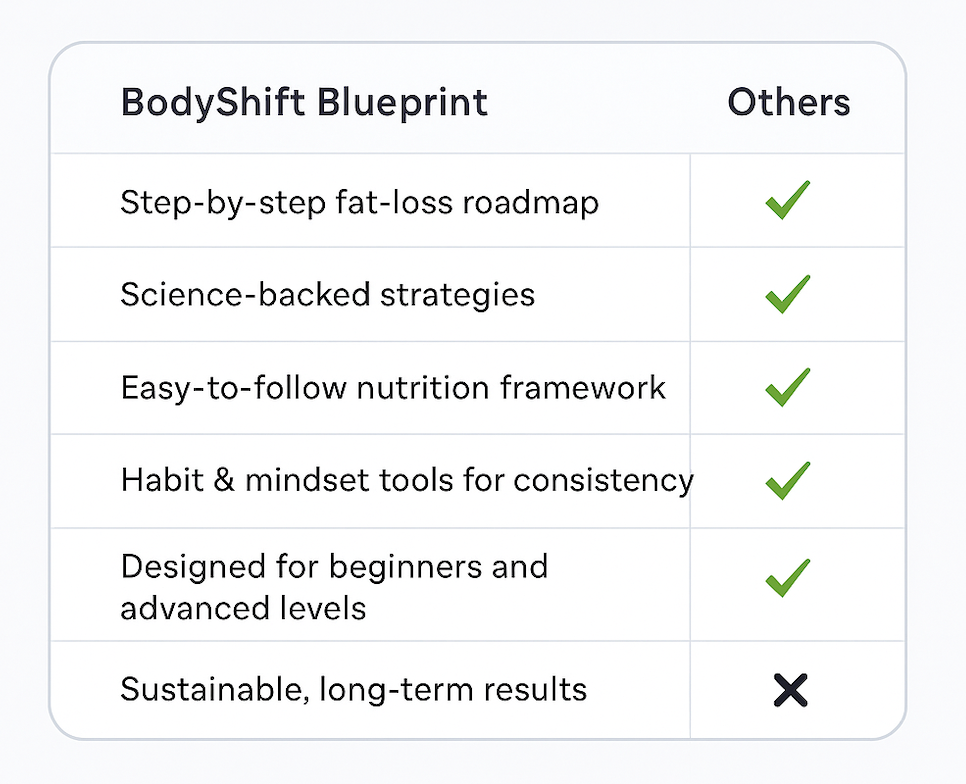 The BodyShift Blueprint is dedicated to helping individuals achieve sustainable weight loss through clear guidance, proven strategies, and a structured system that removes confusion and overwhelm. We empower people to take control of their health, build discipline, and create a body they’re proud of.